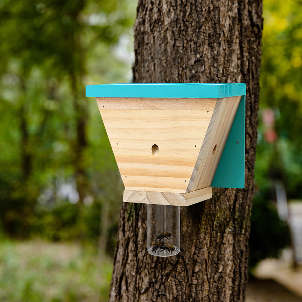 Our carpenter bee traps stand out with superior quality and craftsmanship. Perfectly sized to attract and trap bees . Made with the perfect wood to attract the nesting carpenter bee . Pesticide free they are completely safe around children and pets .