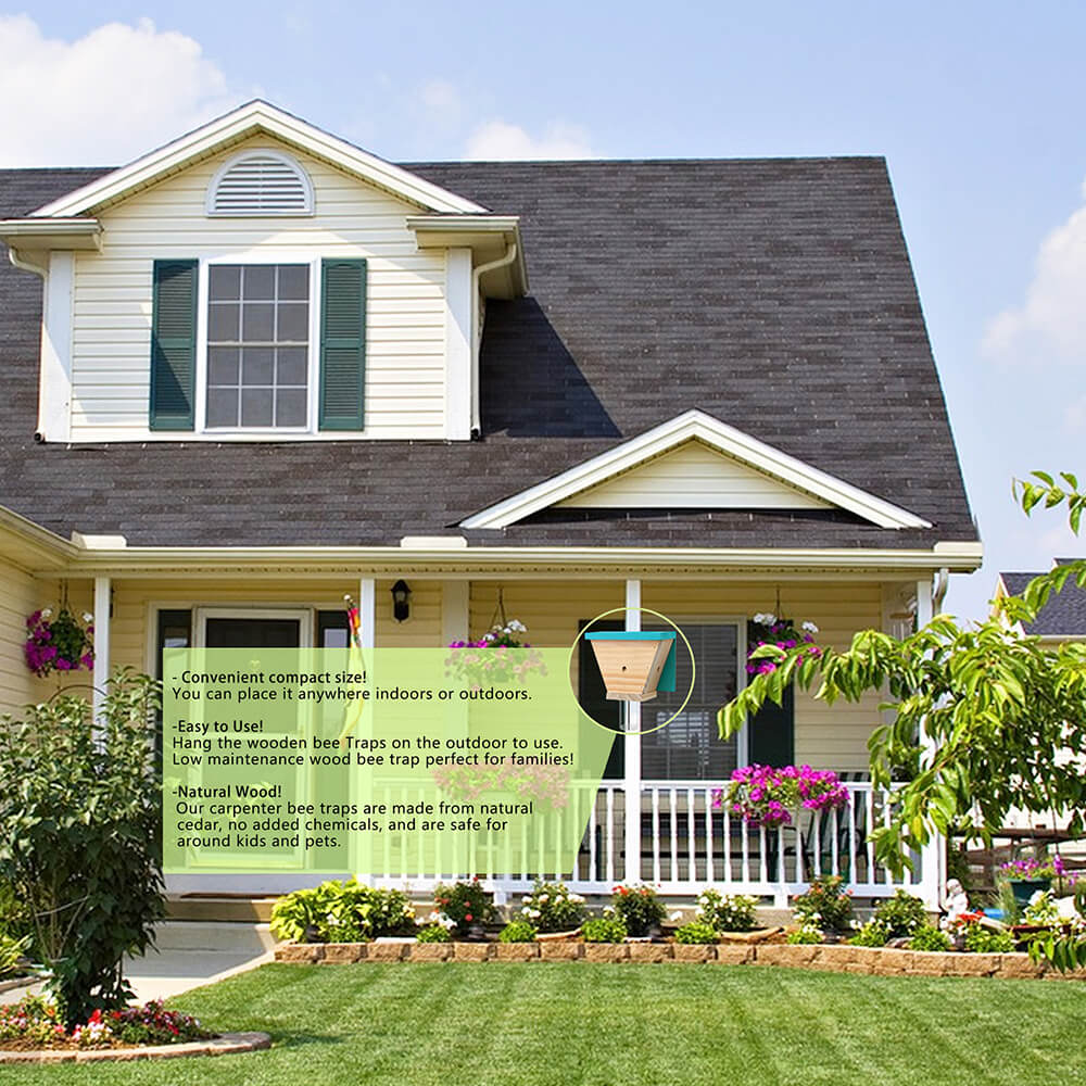 Our carpenter bee traps stand out with their generous size and superior quality compared to cheaper alternatives. Crafted from natural cedar, prevents carpenter bee, ensuring a safe environment for kids and pets.